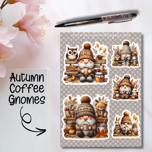 Meet your new desk companions! These charming autumn coffee gnomes are here to transform your workweek into something delightful. Each adorable sticker features cozy gnomes celebrating the season with their favorite brew, bringing warmth and whimsy to your workspace. Stick them on your laptop, water bottle, planner, or anywhere you need a smile. Perfect for coffee lovers and autumn enthusiasts alike, these stickers are your secret weapon against Monday blues and midweek slumps. Let these little guys remind you that even busy days deserve a touch of magic and coziness.