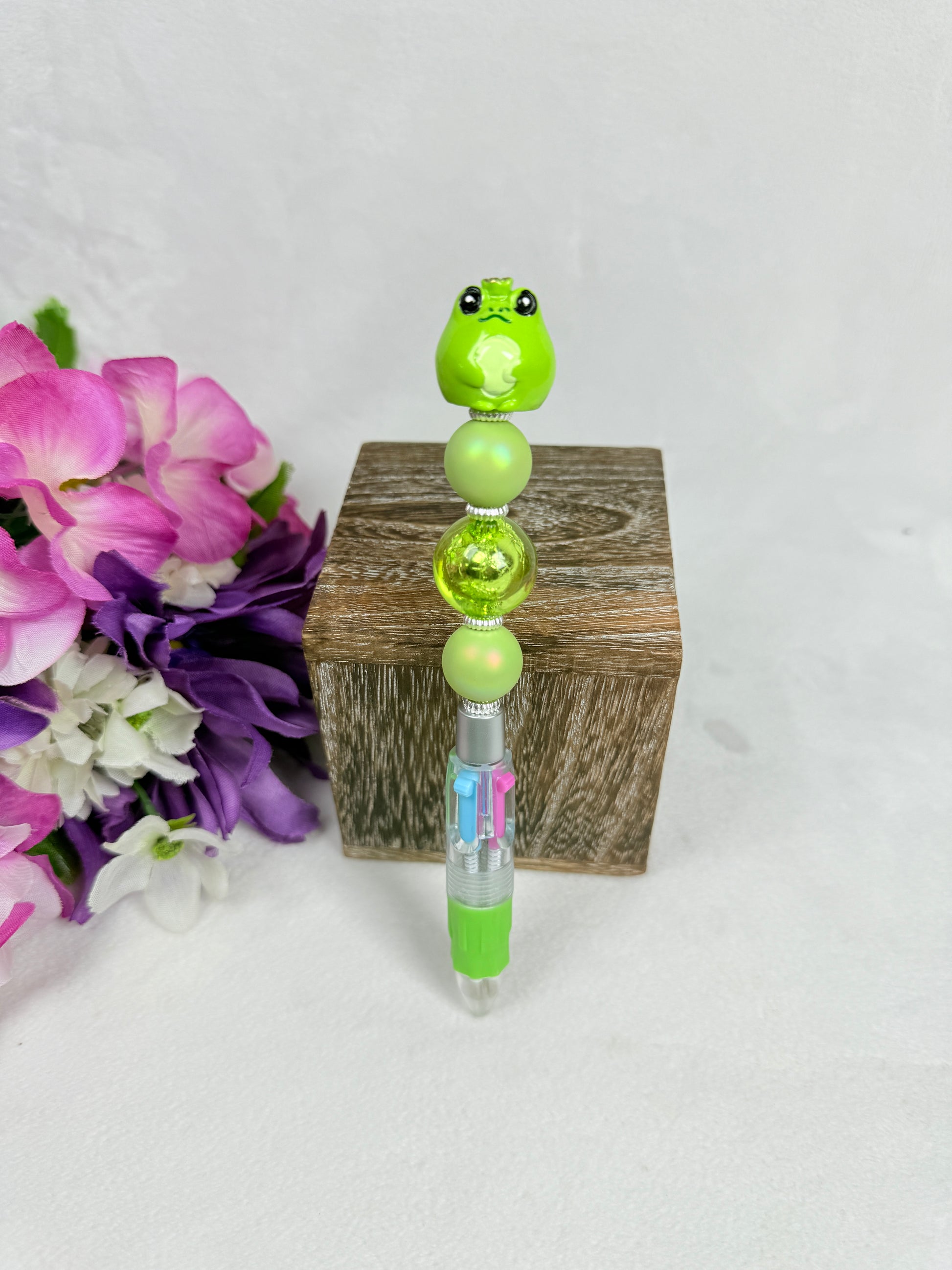 Introducing the unique Frog Topper Four Ink Pen - perfect for students, teachers, and planners! With four ink colors in one pen, stay organized and efficient while adding a touch of fun with a playful frog design. A must-have for anyone looking to excel in their work or studies.