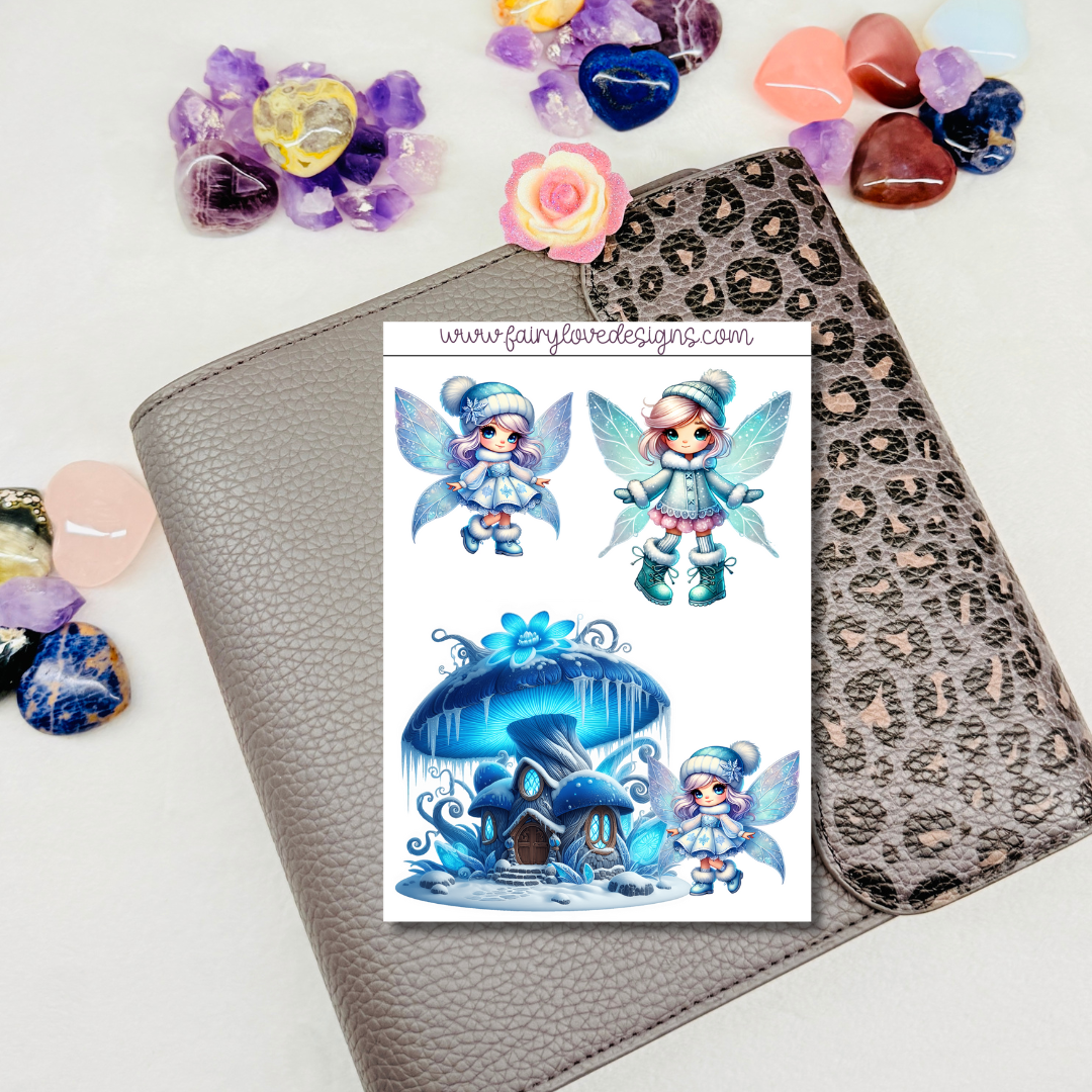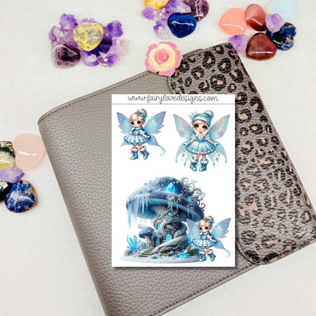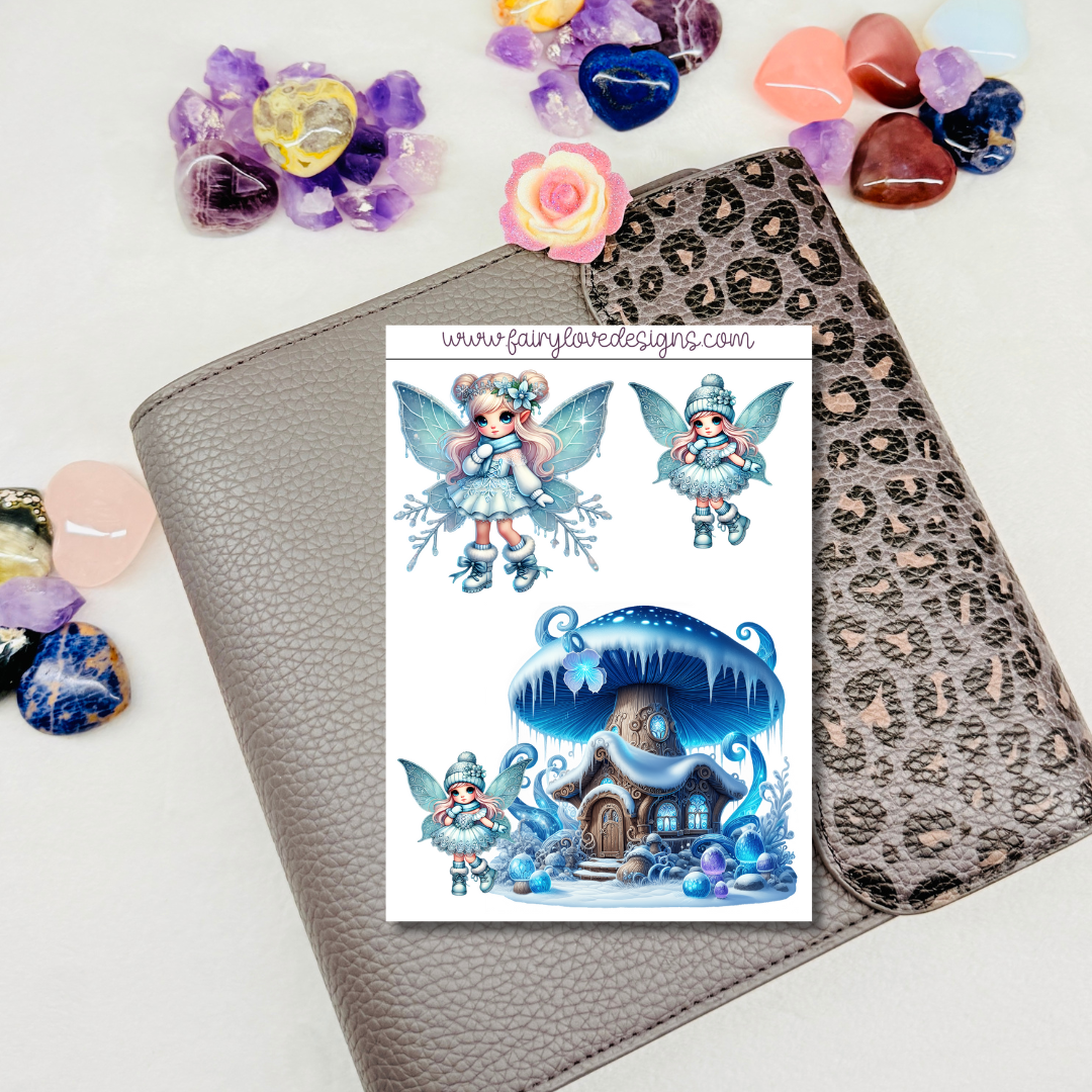 Step into a magical winter wonderland with Icy Fairy Mushroom Homes. As snow blankets the landscape and delicate fairies glide along sparkling icy paths, these enchanting designs bring a whimsical charm to your planner or journal layouts. Perfect for capturing the serene beauty of the season, they inspire creativity and add a touch of fantasy to your daily planning. Embrace the magic of winter and transform your pages into a frosty fairy tale.