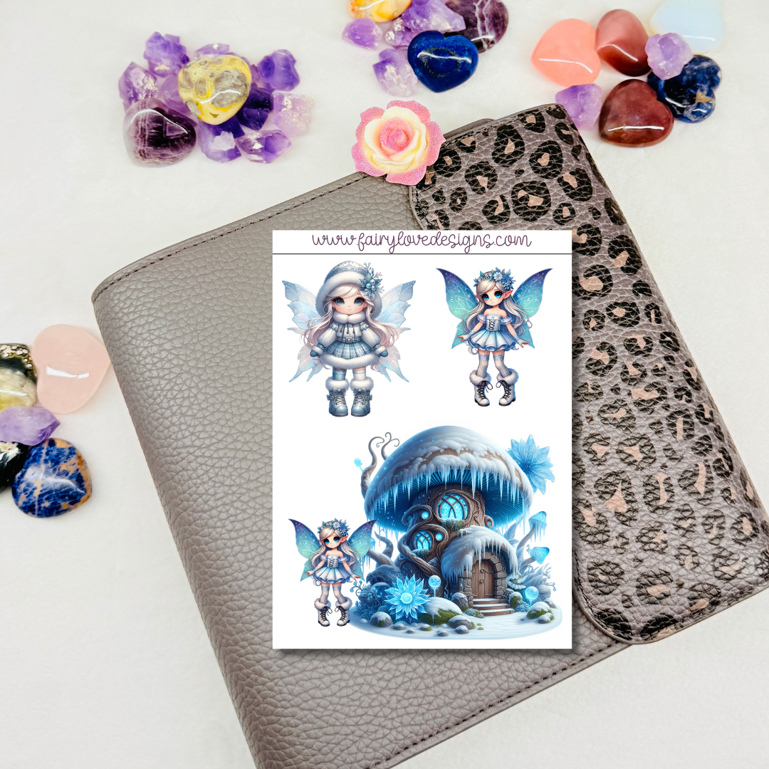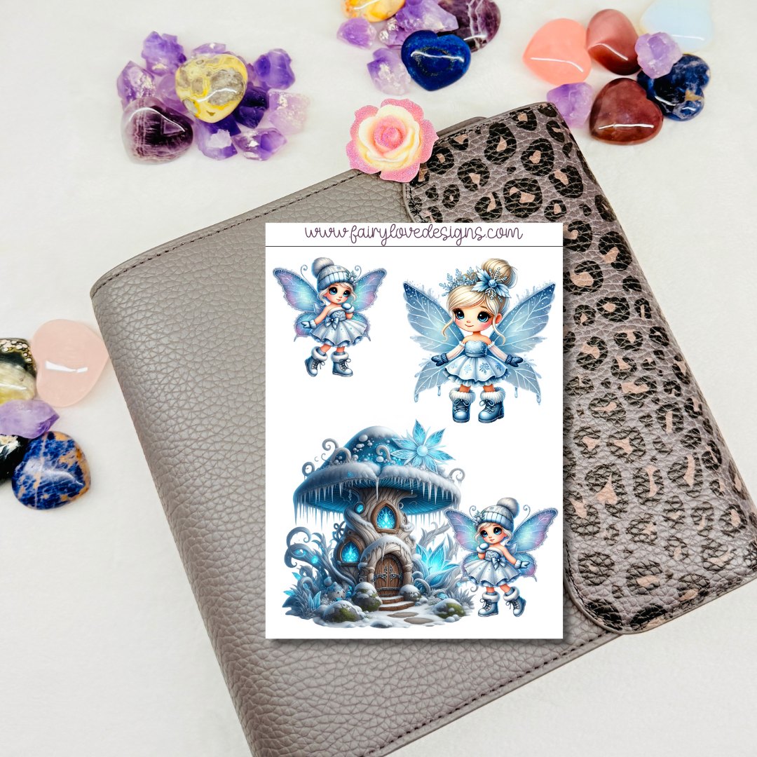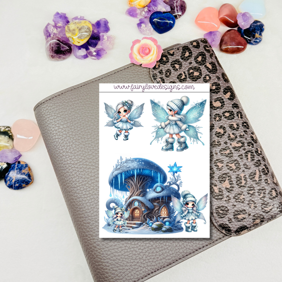 Step into a magical winter wonderland with Icy Fairy Mushroom Homes. As snow blankets the landscape and delicate fairies glide along sparkling icy paths, these enchanting designs bring a whimsical charm to your planner or journal layouts. Perfect for capturing the serene beauty of the season, they inspire creativity and add a touch of fantasy to your daily planning. Embrace the magic of winter and transform your pages into a frosty fairy tale.